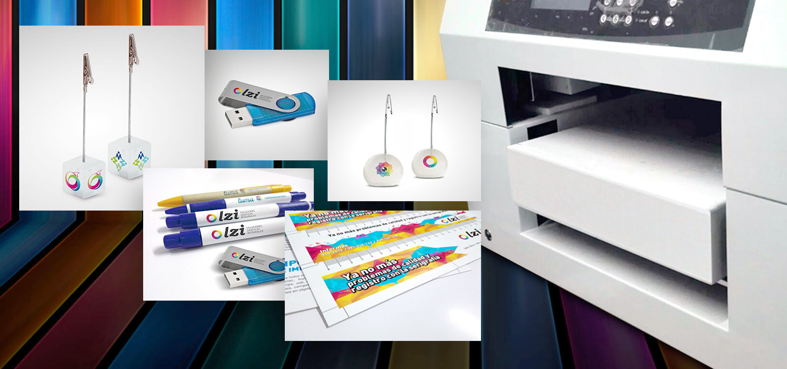 Lo último en sistemas de impresión sobre cualquier superficie rígida y secado inmediato, espcial para artículos promocionales como lapiceros, usb, llaveros y muchos más.
